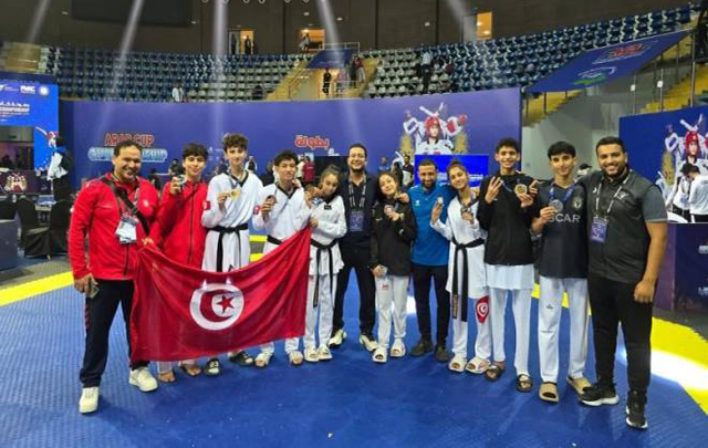 تصدر المنتخب التونسي للأواسط منافسات كأس العرب للتايكواندو المقامة في مدينة الفجيرة الإماراتية، بعد أن حقق لاعبوه ثماني ميداليات متنوعة في مختلف الفئات والأوزان.