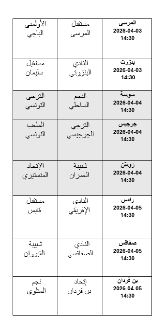 * الرابطة الأولى: برنامج الجولة التاسعة إياب