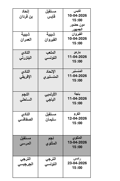 * الرابطة 1 : تغيير مواعيد مقابلات الجولة العاشرة إياب