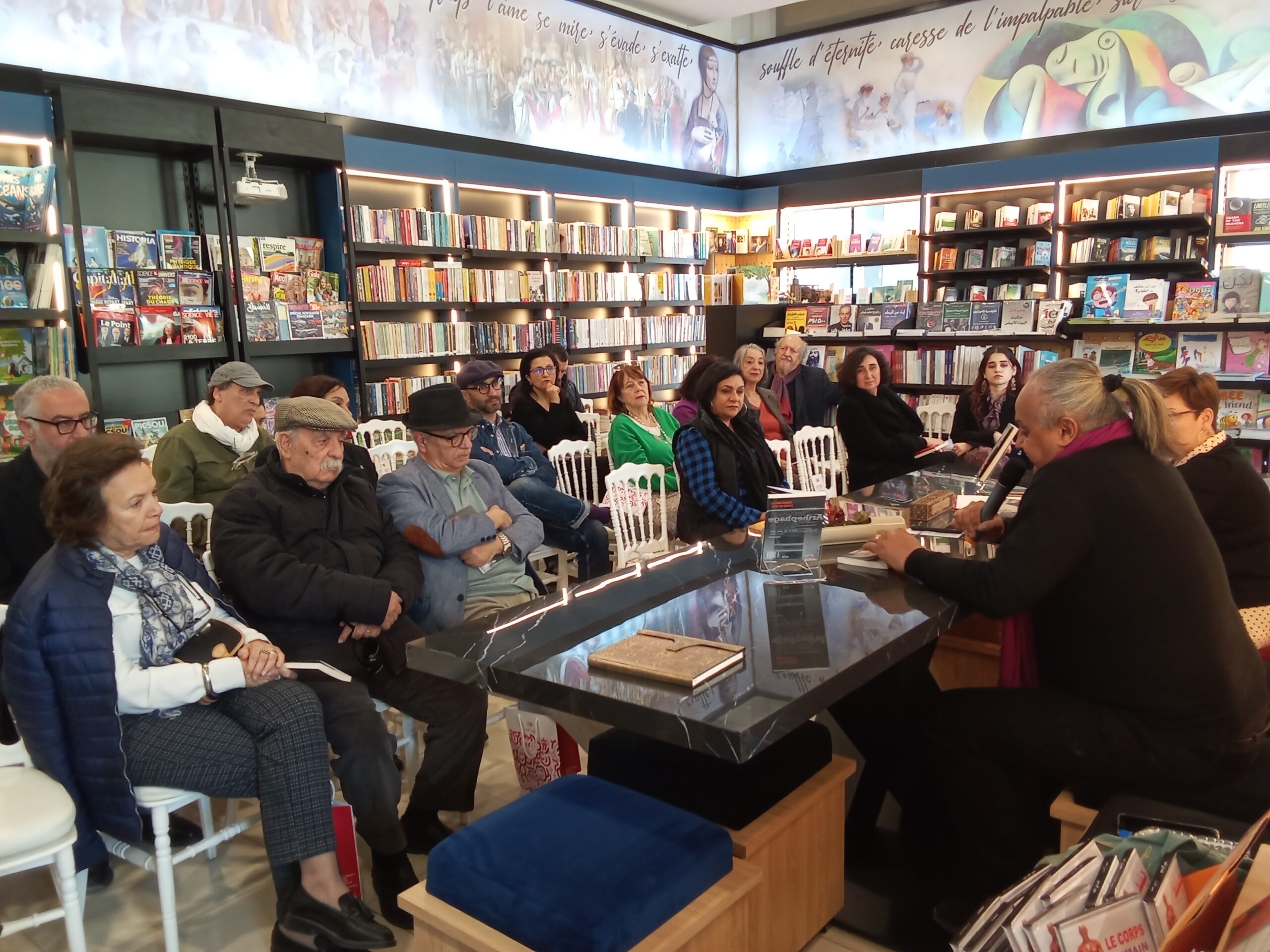 الشعب نيوز / ناجح مبارك – جمع الشاعر والمترجم والروائي معز ماجد آخر الاسبوع عدد هام من المثقفين واحباء المكتبات والكتاب واختار فضاء بالبحيرة 1 حيث مكتبة Arthephage وفيها تم التداول في نصه الصادر حول الشاعر الفرنسي لوران غاسبار وهو الطبيب الجراح الذي عمل بالقدس تونس واستقر لسنوات بمدينة سيدي بوسعيد وكان نص معز ماجد المنحدر مثل الشخصية الشاعرة من افق العلوم الصحيحة و الرياضيات أساسا…