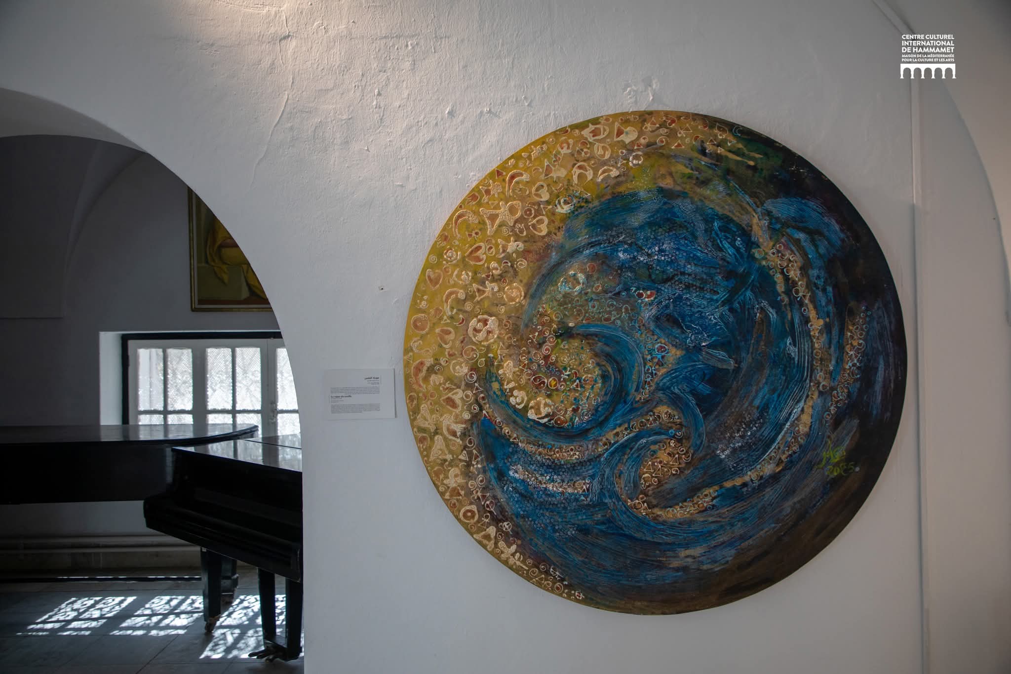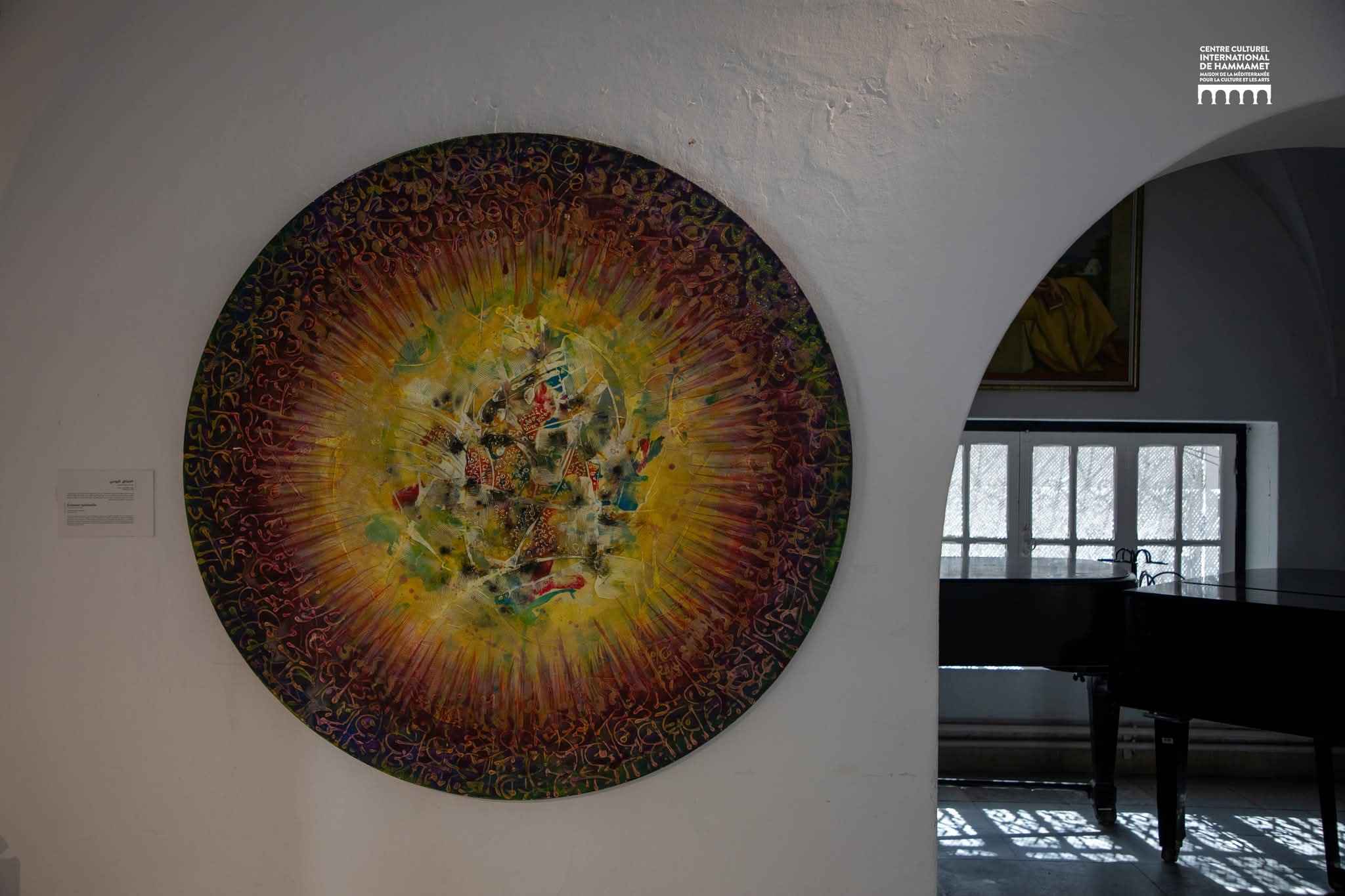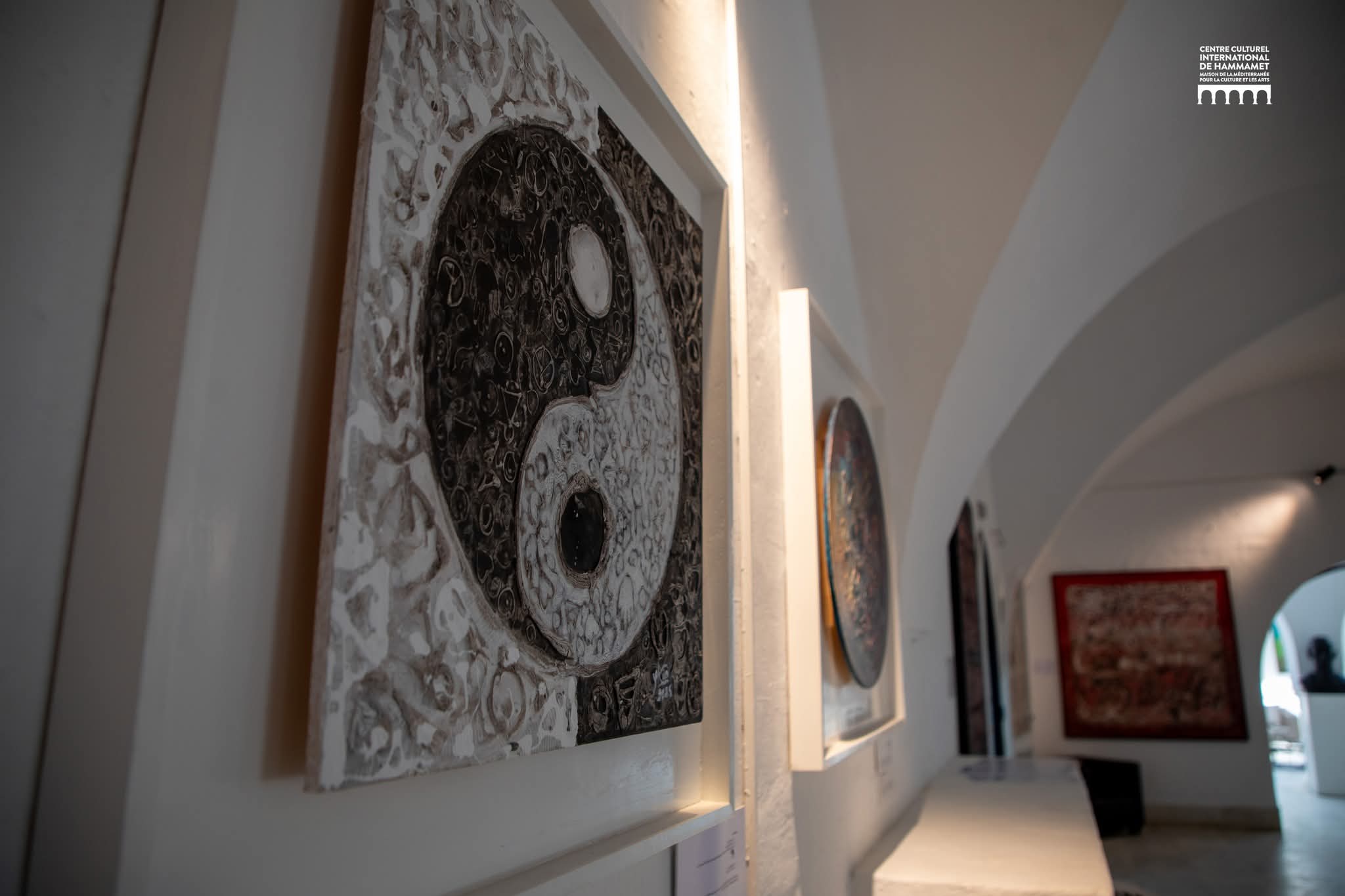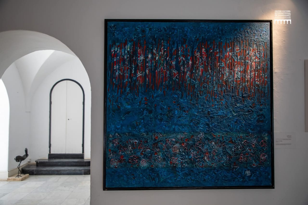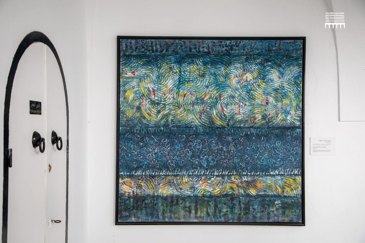 المعرض هذه المرّة على أرض الحمّامات في المركز الثّقافي الدّولي بين دوالي الظّلال تحت أسقفها من العاشر من نيسان أفريل إلى الرابع والعشرين منه. تدلي لوحاته التي تقارب الثّلاثين بمساحاتٍ هائلة للمساحات150/150 من الصّنتمترات وتخلق في دوائرها أيضا علاقة متناسبة مع الكرويّة تتحاور في شؤونها أواصر أخرى مع الطّبقات من الألوان تذهب بالمتأمّل إلى أكثر من تصريف.