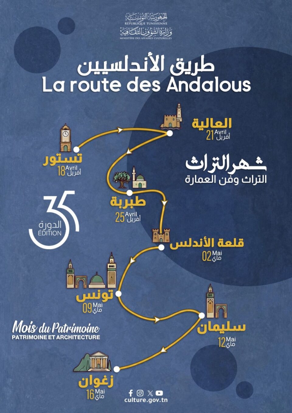 الشعب نيوز / ناجح مبارك – في إطار فعاليات الدّورة 35 من شهر التراث، وتحت إشراف وزارة الشؤون الثقافية، تنتظم في الفترة الفاصلة بين ,اليوم السبت 18 أفريل و16 ماي 2026 فعاليات تظاهرة “طريق الأندلسيّين” التي تحيي ذاكرة وتاريخا ثريّا يعكس مدى تنوع الحضارات في بلادنا.