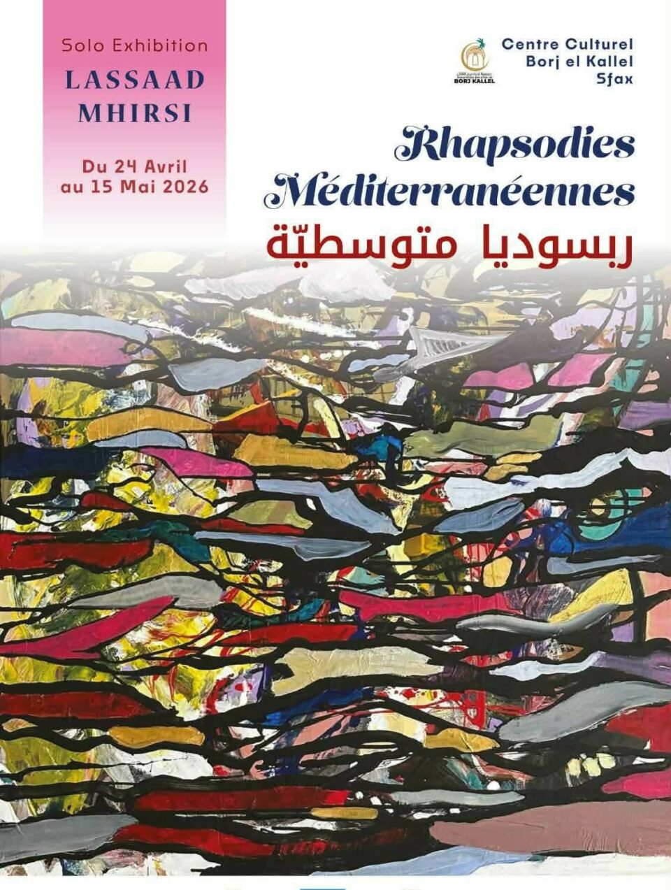 الشعب نيوز / ناجح مبارك – ضمن نشاطه الفني التشكيلي بين الورشة و المعارض الشخصية يقدم الفنان التشكيلي لسعد المحيرصي معرضه الفني الشخصي بفضاءات العرض بالمركز الثقافي برج القلال بصفاقس و ذلك تحت عنوان ” ربسوديا متوسطية ” حيث يكون الافتتاح لهذا النشاط الثقافي الفني يوم الجمعة 24 أفريل 2026 و يتواصل الى غاية يوم 15 ماي 2026 المقبل و بالمناسبة فإن جمهور الفن التشكيلي و رواد الفضاء على موعد مع جملة أعمال فنية للفنان المحيرصي التي تراوح بين جديده و قديمه وفق اشتغالاته الفنية التي تسافر فيها عوالم اللوحات الى مناطق من التجريدية ذات التلوينات المتعددة حيث الفنان في سفره العميق مع القماشة و بحساسيته و وعيه الفني الذي رافقه لسنوات بين اقاماته المتعددة بتونس و بعدد من البلاد الأوروبية و غيرها.