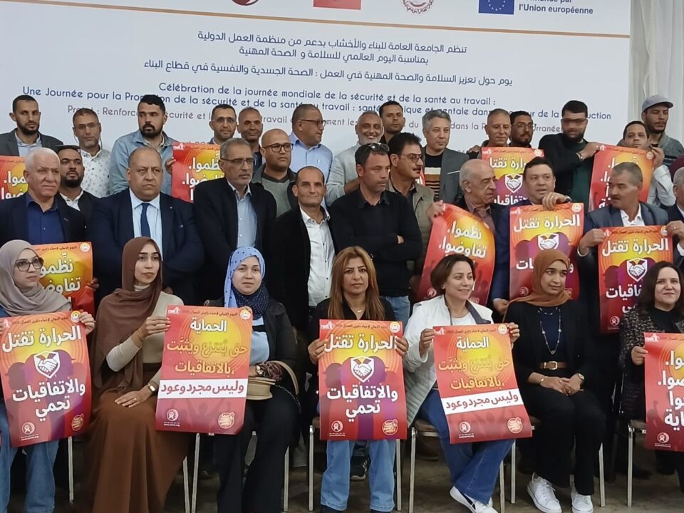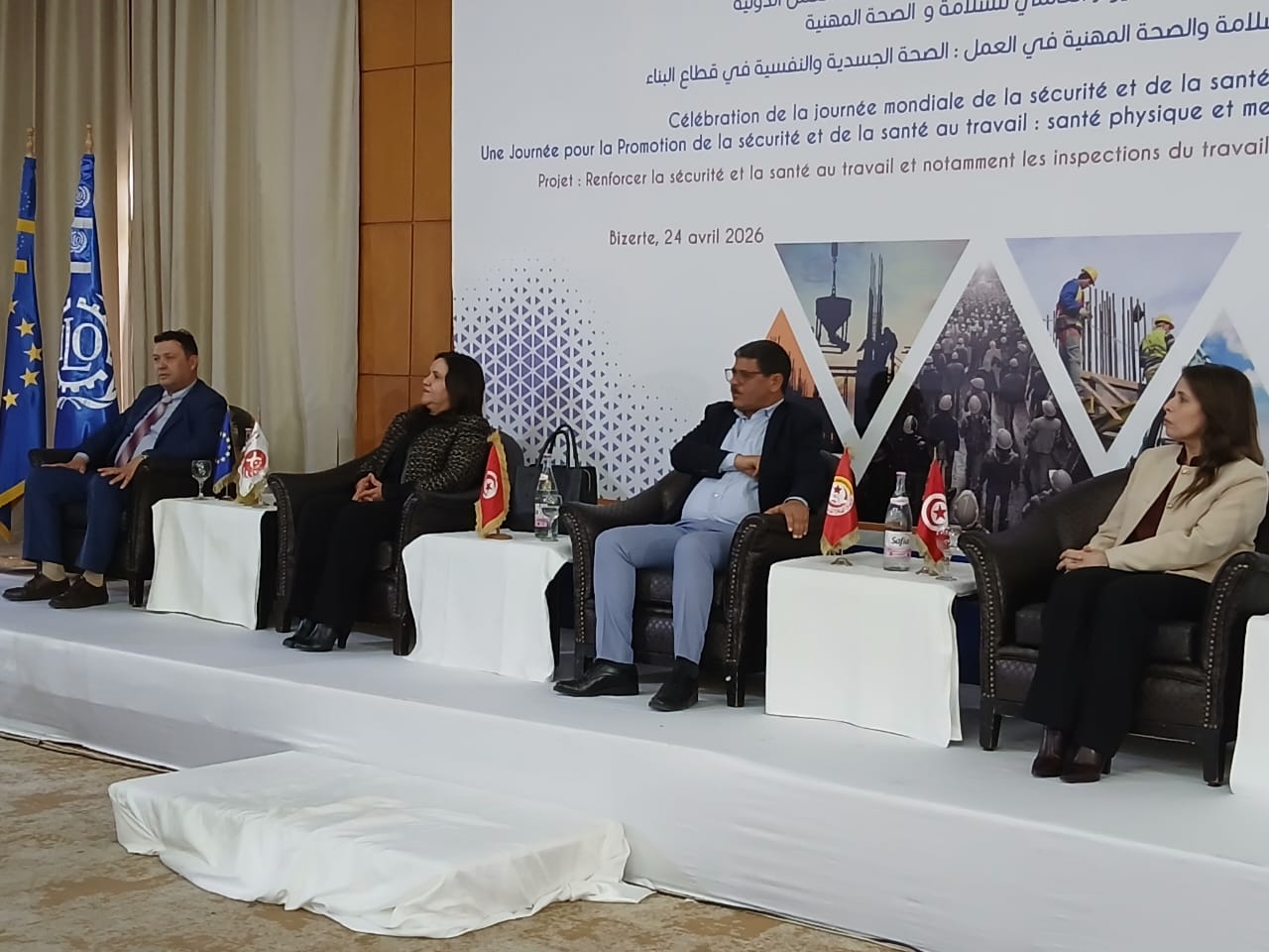 الشعب نيوز / محمد إلاهي – تنظم الجامعة العامة للبناء  و الأخشاب صباح اليوم الجمعة 24 أفريل 2026 بجهة بنزرت ندوة دراسيّة حول تعزيز السلامة و الصحة المهنية في العمل و ذلك بدعم من منظمة العمل الدولية بمناسبة اليوم العالمي للسلامة و الصحة المهنية و بالتنسيق مع الاتحاد الجهوي للشغل ببنزرت.