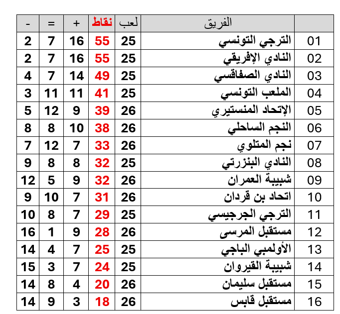 و على ضوء نتائج مباريات اليوم ، يصبح ترتيب البطولة مؤقتا على النحو التالي :