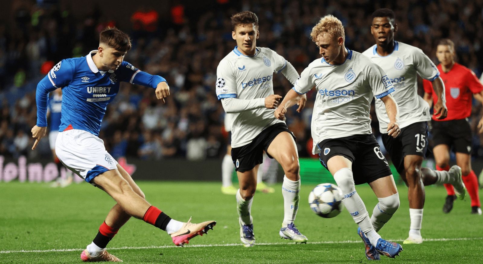 في اسكتلندا، صدم كلوب بروج مضيفه العريق رينجرز بثلاثية خاطفة في أول عشرين دقيقة من اللقاء.