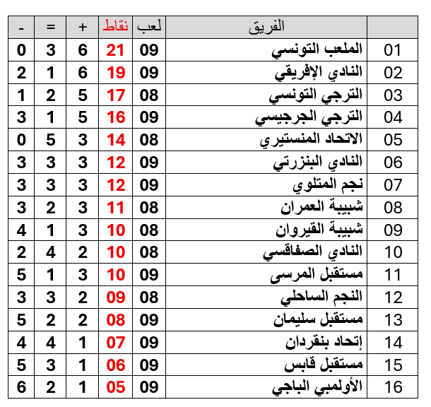 و على ضوء نتائج المقابلات المذكورة ، يصبح ترتيب البطولة مؤقتا على النحو التالي :