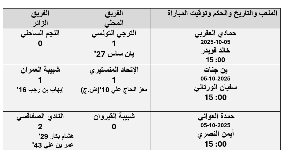 الشعب نيوز / كاظم بن عمار - إنتهت الأشواط الأولى من مباريات الدفعة الثالثة و الأخيرة من الجولة التاسعة لبطولة الرابطة المحترفة الأولى لكرة القدم موسم 2025-2026 و أسفرت عن النتائج التالية :