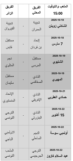 أصدرت الرابطة الوطنية لكرة القدم المحترفة، تعيينات مباريات الجولة العاشرة ذهاب لبطولة الرابطة المحترفة الأولى، والتي ستُقام على امتداد أربعة أيام من السبت 18 إلى الأربعاء 22 أكتوبر 2025.