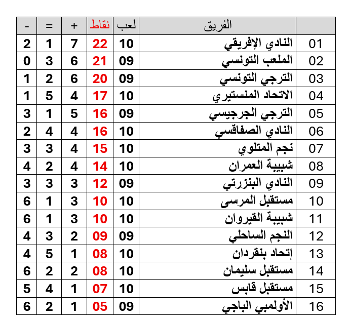 وعلى ضوء نتيجة المقابلة المذكورة ، يصبح ترتيب البطولة على النحو التالي :