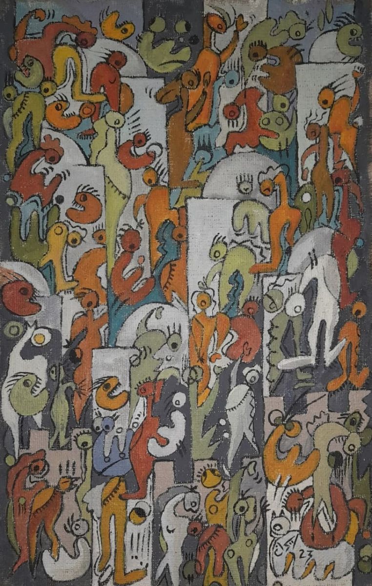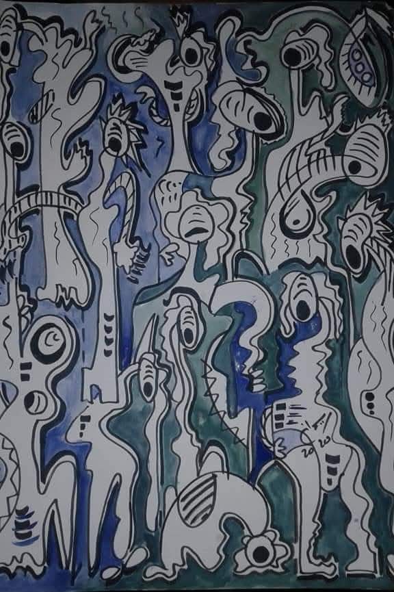 إمضاءات قد تترافق مع ما ينشئه التّشكيل المعاصر التّونسي حين نلقف تلك الزّواجات تغرق في تأثّرها بالبصريات بإمضاءات عدول الاشهاد أعمالا تفتح على علاقاتها بالموروث الخطّي لها ما لها من ضرورات القراءة والتّأويل، لكنّ هاجر لها نبضها التّشخيصي تؤالف بين العناصر والقلوب في صياغاتها الجمعيّة ضمن حدس خارق يذهب مذهبه في التّصّوف وقد يكتمل ذلك عند إمكان الحلقة، لها ملمحها البصري الخاص تعلق بنموذجها الفريد في جعل اللّوحة أشبه بزخرفة حيّة تنشأ من صخب لا يهفت تبدؤه برسومات مجرّدة غرائبيّة أصوتا وسيقانا وأفواها وأسمالا، يحدثُ ذلك، تنحدر تلك المشاهد والفصول من بعث مؤجّل،ما ترميه اليد يفضحه حجر النّرد، هكذا السّرعة أو التّسارع في تزاوج على العرف يقنع بالنّجوى بين ما يمكن وما لا يمكن، كشأن رقصات القبائل تتسلّق صراخاتها عند الولادة أو عند المآتم بينما المدينة القرية تحضر بعراقاتها تغرق تعرق من شدّة هذا الانتفاض، لعلّه فرحنا في تلك الأيّام من ممفتح يناير عند ذلك الهبوب.