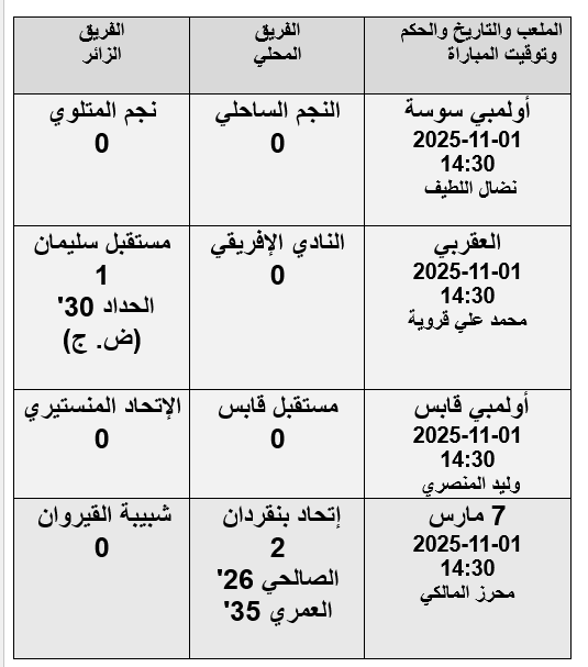 الشعب نيوز / كاظم بن عمار - إنتهت الأشواط الأولى من مباريات الدفعة الأولى من الجولة 12 لبطولة الرابطة المحترفة الأولى لكرة القدم موسم 2025-2026 و أسفرت عن النتائج التالية :