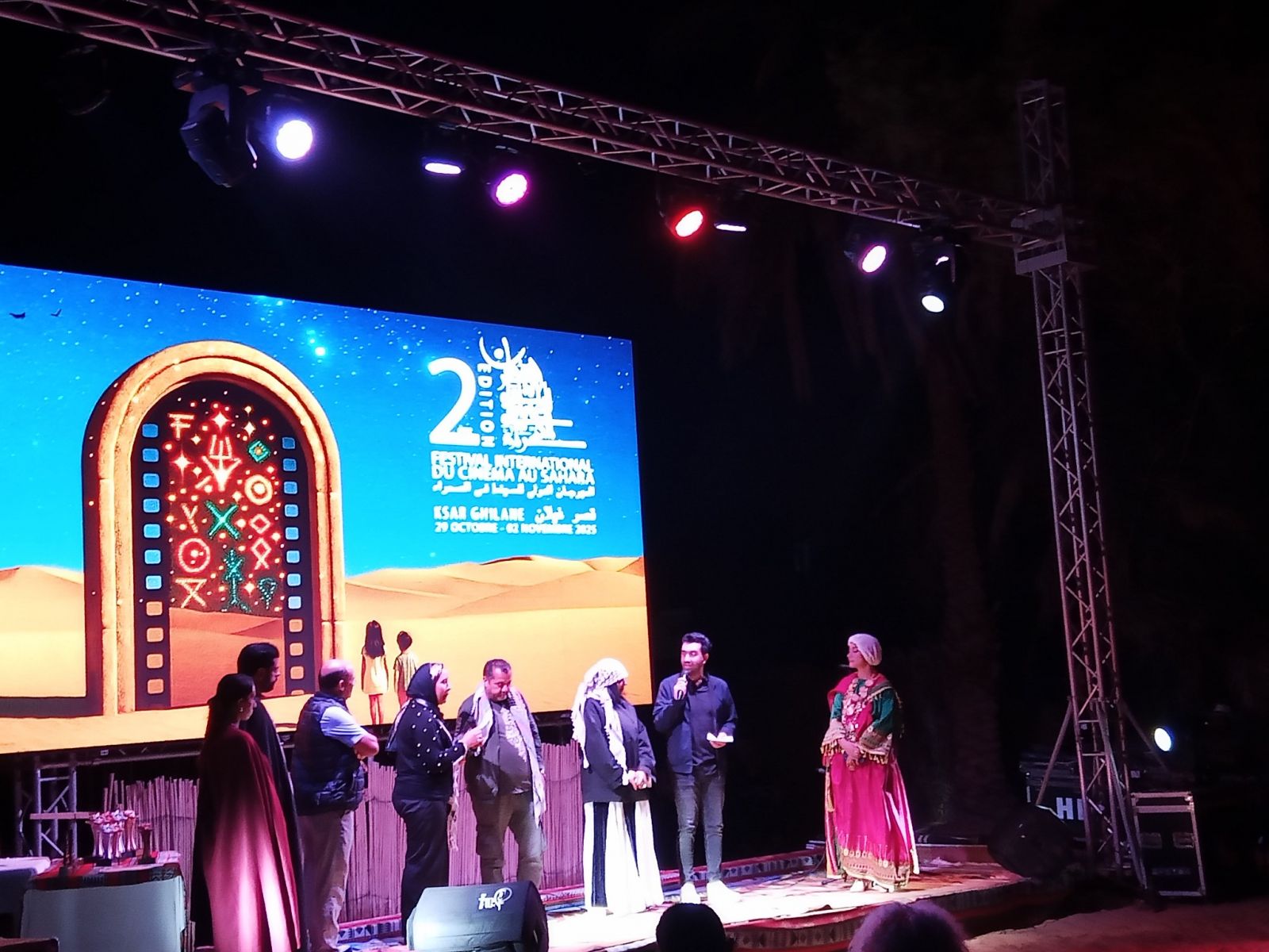 المكتب الاعلامي للمهرجان - الشعب نيوز - أسدل الستار مساء السبت 1 نوفمبر 2025 على فعاليات الدورة الثانية من المهرجان الدولي للسينما في الصحراء في قصر غيلان من ولاية ڨبلي والذي انطلق يوم 29 اكتوبر 2025 ليتواصل يوميا مع الورشات واللقاءات الفكرية وتكريم السينما الجزائرية باعتبار الجزائر ضيف شرف هذه الدورة من المهرجان .