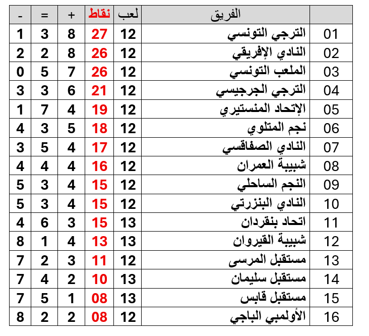 و على ضوء نتائج المقابلات المذكورة ، يصبح ترتيب البطولة مؤقتا على النحو التالي :