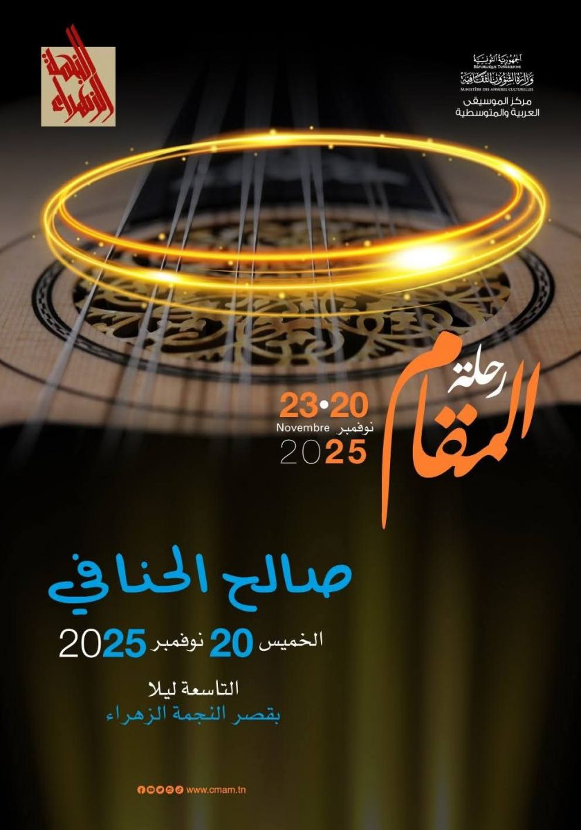 الشعب نيوز / ناجح مبارك - تنطلق تظاهرة "رحلة المقام " بفضاء النجمة الزهراء دار البارون ديرلوجي بسيدي بوسعيد مساء يوم الخميس 20 نوفمبر 2025 لتتواصل إلى الأحد 23 نوفمبر 2025.