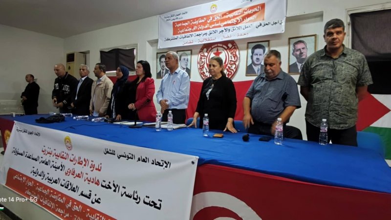 الشعب نيوز / بنزرت - عقدت الإطارات النقابية بجهة بنزرت اجتماعًا يوم السبت 08 نوفمبر 2025 بمقر الاتحاد الجهوي للشغل، تحت إشراف الأخت هادية العرفاوي الأمينة العامة المساعدة المكلفة بالعلاقات العربية والدولية ، وبحضور الأخ حفيظ حفيظ الأمين العام المساعد المكلف بالشؤون القانونية ، حيث تم التداول في الأوضاع النقابية والاجتماعية الراهنة.
