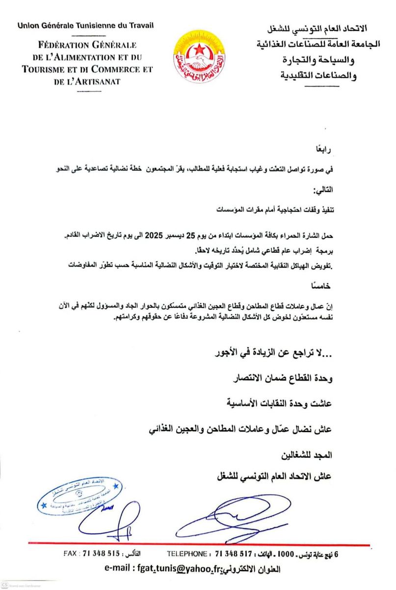 · حمل الشارة الحمراء بكافة المؤسسات ابتداءً من 25 ديسمبر 2025 وحتى تاريخ الإضراب القادم.