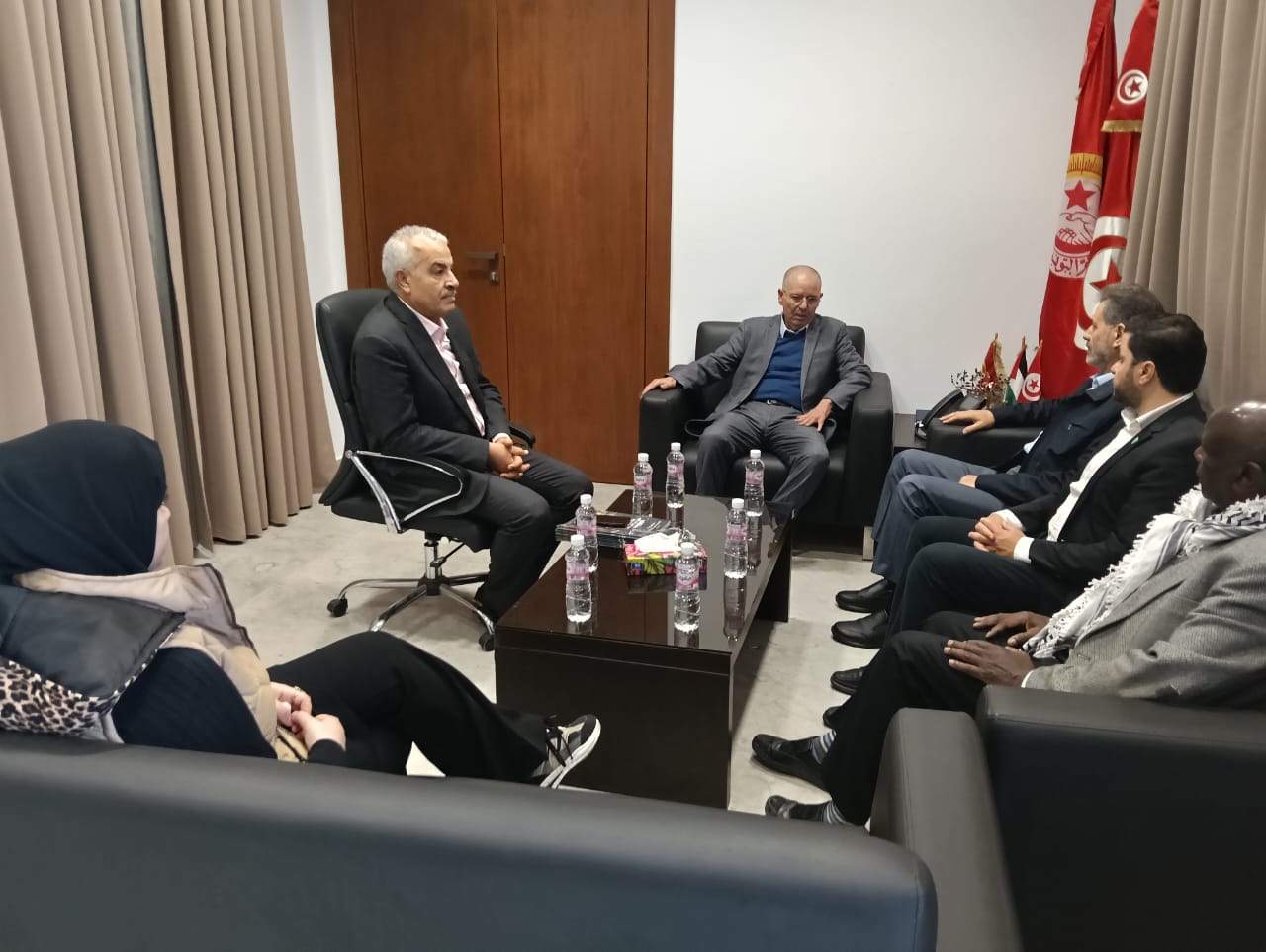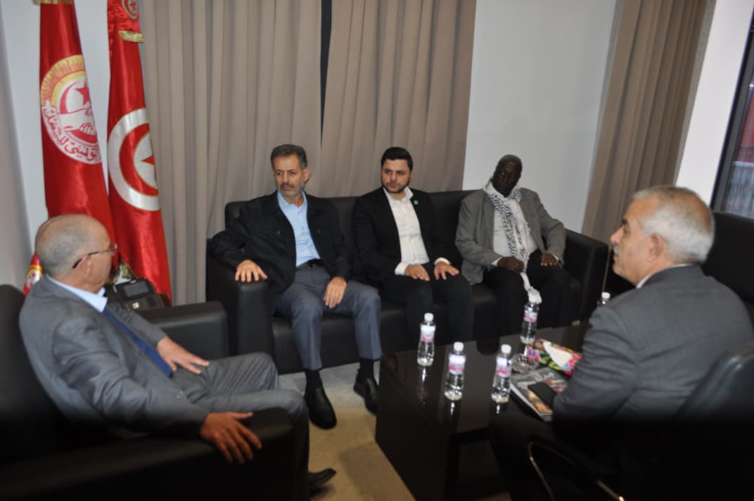الشعب نيوز / أبو خليل - استقبل الأخ نور الدين الطبوبي الأمين العام للإتحاد العام التونسي للشغل صباح اليوم الخميس 18 ديسمبر 2025 بمكتبه وفدا عن الفصائل الفلسطينية ممثلة في الجبهة الشعبية لتحرير فلسطين وحركة حماس وحركة الجهاد الاسلامي .
