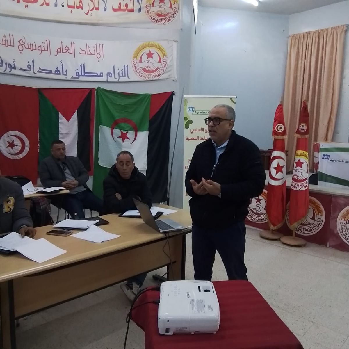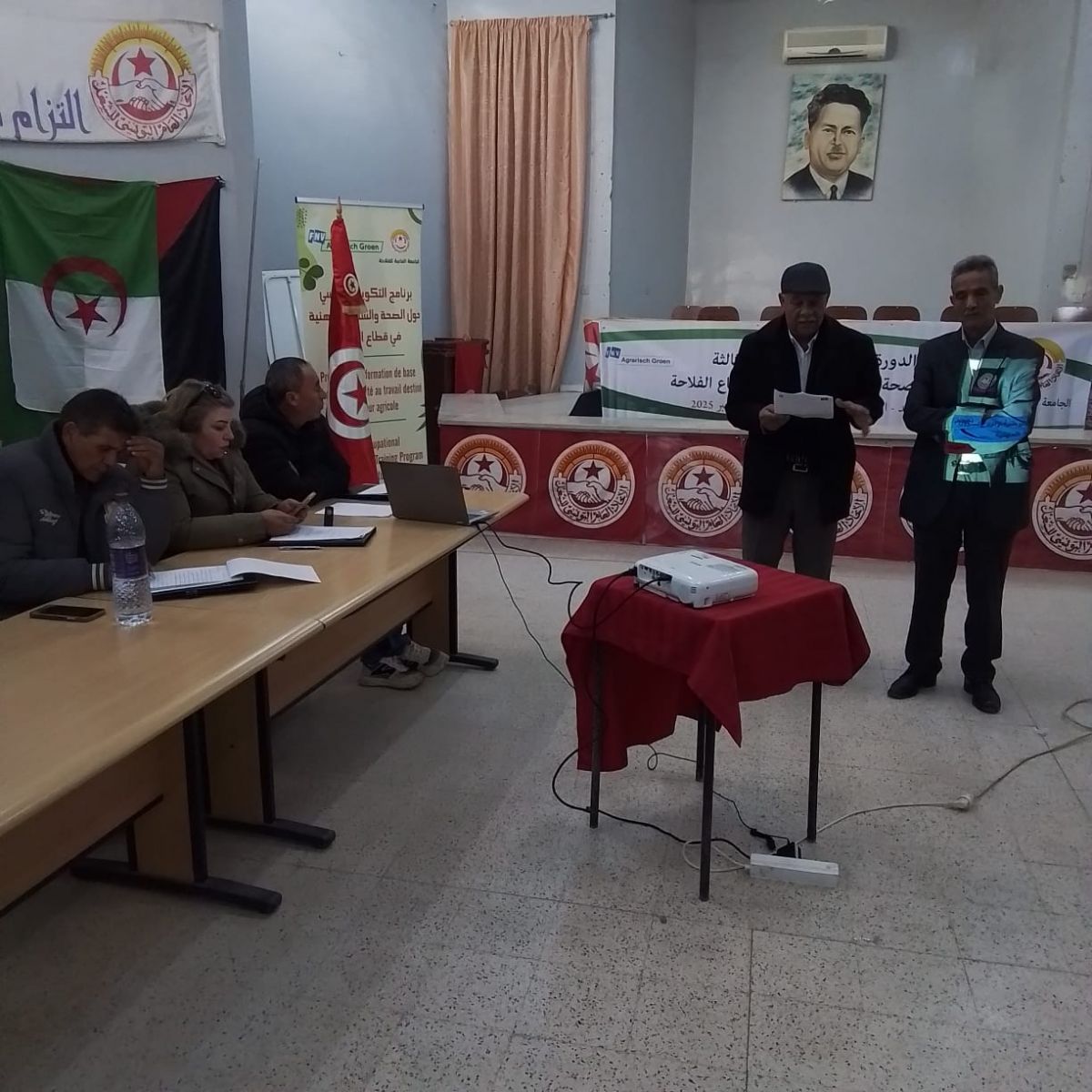 الشعب نيوز / صبري الزغيدي - على امتداد يومي السبت و الأحد 27 و 28 ديسمبر 2025 الجاري وبالتعاون مع فيدرالية النقابات الهولندية FNV ، تنعقد الدورة الإقليمية التكوينية الثالثة حول الصحة والسلامة المهنية في قطاع الفلاحة بجهة توزر بتأطير من الأخ عمار الزين الكاتب العام للجامعة العامة للفلاحة وبإشراف من الاخ محمد علي الهادفي الكاتب العام للاتحاد الجهوي للشغل بتوزر، وذلك بمشاركة نقابيات ونقابيين من جهات توزر وسيدي بوزيد وقفصة والقصرين بالتعاون مع قسم العلاقات العربية والدولية وقسم الحماية الاجتماعية بالاتحاد.