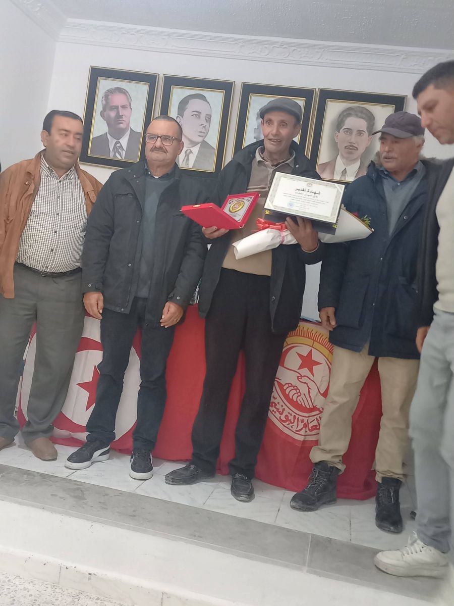 الشعب نيوز / المهدية - انعقد اليوم الأحد 28 ديسمبر 2025 مؤتمر الاتحاد المحلي للشغل بالشابة وملولش تحت إشراف الإخوة أعضاء المكتب التنفيذي للاتحاد الجهوي للشغل بالمهدية محمد الشاهد ومحجوب خنفوس ورمزي الزبالي وقد وقع تكريم الاخوين المهدي الحطاب الكاتب العام المتخلي للاتحاد المحلي و عبدالمجيد بن منصور عضو الاتحاد المحلي اعترافا بمجهوداتهما في الدفاع عن مصالح الشغالين وعن الاتحاد وقد أسفرت الانتخابات عن صعود الأخوة والاختين :