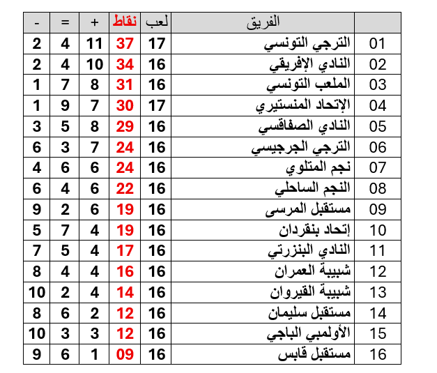 و على ضوء نتيجة مباراة اليوم ، يصبح ترتيب البطولة مؤقتا على النحو التالي :