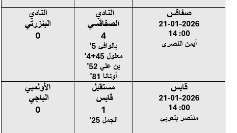 الشعب نيوز / كاظم بن عمار - جرت اليوم الأربعاء 21 جانفي 2026 الدفعة الثالثة من مقابلات الجولة الثانية إياب لبطولة الرابطة المحترفة الاولى لكرة القدم موسم 2025-2026 و أسفرت عن النتائج التالية :