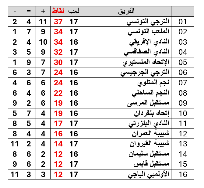 و على ضوء نتائج المقابلات المذكورة ، يصبح ترتيب البطولة مؤقتا على النحو التالي :