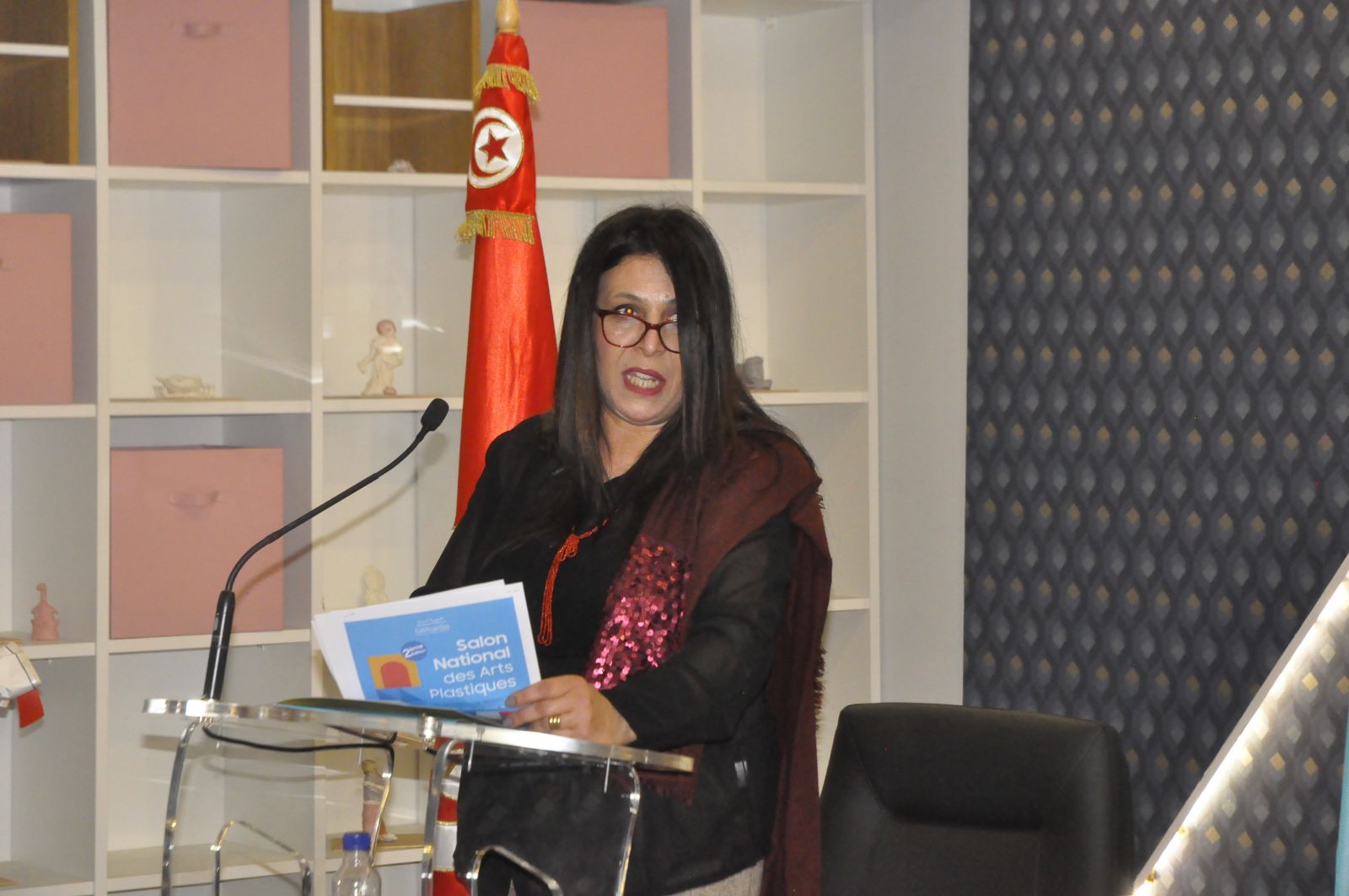 وتجدر الاشارة إلى أن حفل الافتتاح الرسمي للدورة الثانية من الصالون الوطني للفنون التشكيلية، كان مسبوقا بندوة صحفية استهلت بالنشيد الوطني التونسي، ثم تضمنت كلمة رئيسة هيئة تنظيم الصالون ومديرة المتحف الوطني للفن الحديث والمعاصر أحلام بوصندل، التي توجهت بالشكر في مستهل كلمتها إلى سلطة الإشراف مثمنة سعيها ومجهوداتها لان يستمر هذا الصالون في دورته الثانية ليصبح حدثا دوريا.