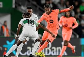 واصل نادي برشلونة تألقه في البطولة الإسبانية لكرة القدم، بعدما عاد بانتصار ثمين من ملعب مضيفه إلتشي بنتيجة 3-1، في اللقاء الذي جمع الفريقين مساء السبت ضمن منافسات الجولة الثانية والعشرين من “الليغا”.