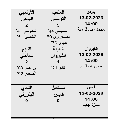 الشعب نيوز / كاظم بن عمار - جرت اليوم الجمعة 13 فيفري 2026 مباريات الدفعة الأولى من مقابلات الجولة 21 لبطولة الرابطة المحترفة الأولى لكرة القدم موسم 2025-2026 وأسفرت عن النتائج التالية :