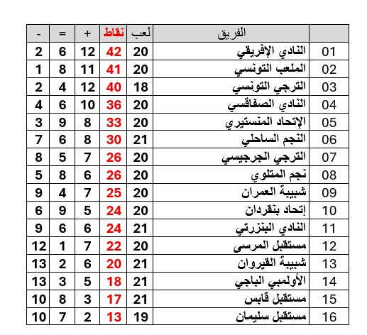 و على ضوء نتائج مباريات اليوم ، يصبح ترتيب البطولة مؤقتا على النحو التالي :