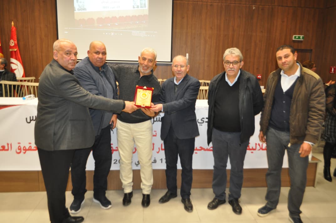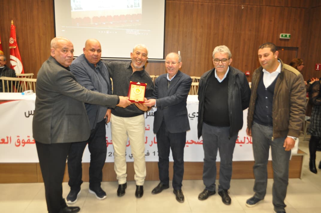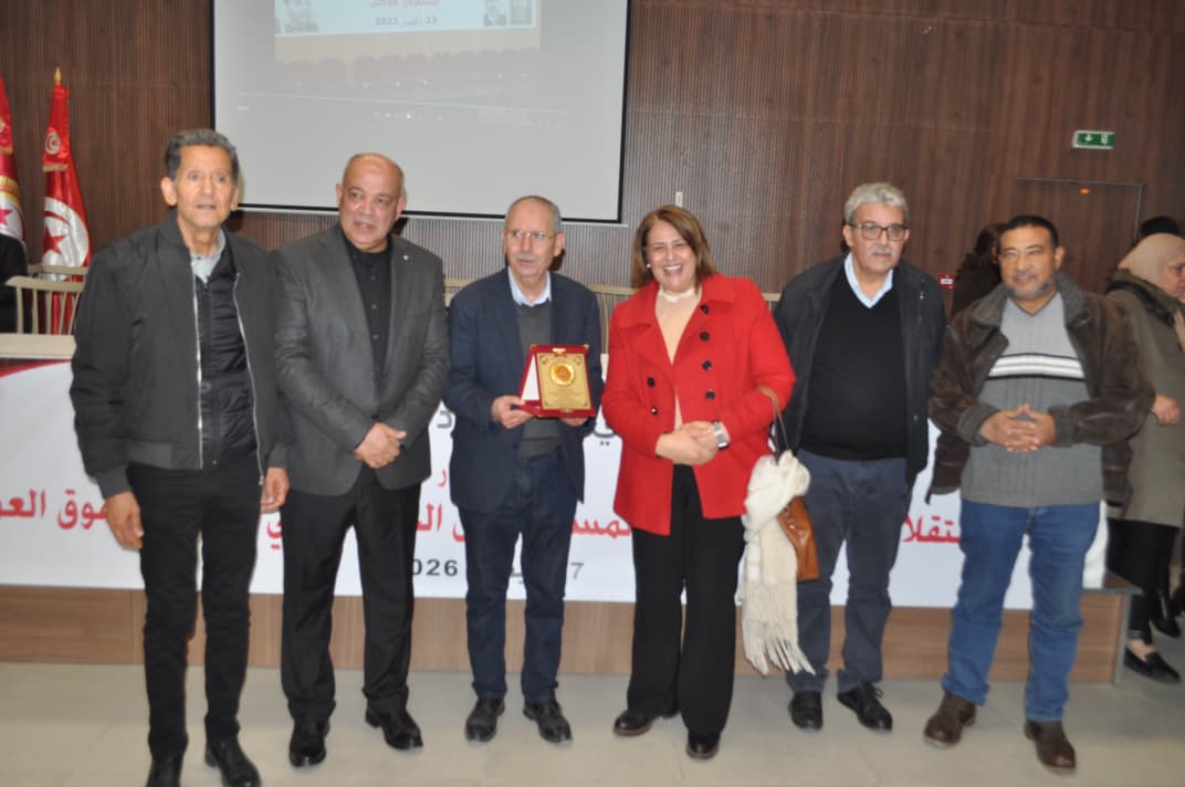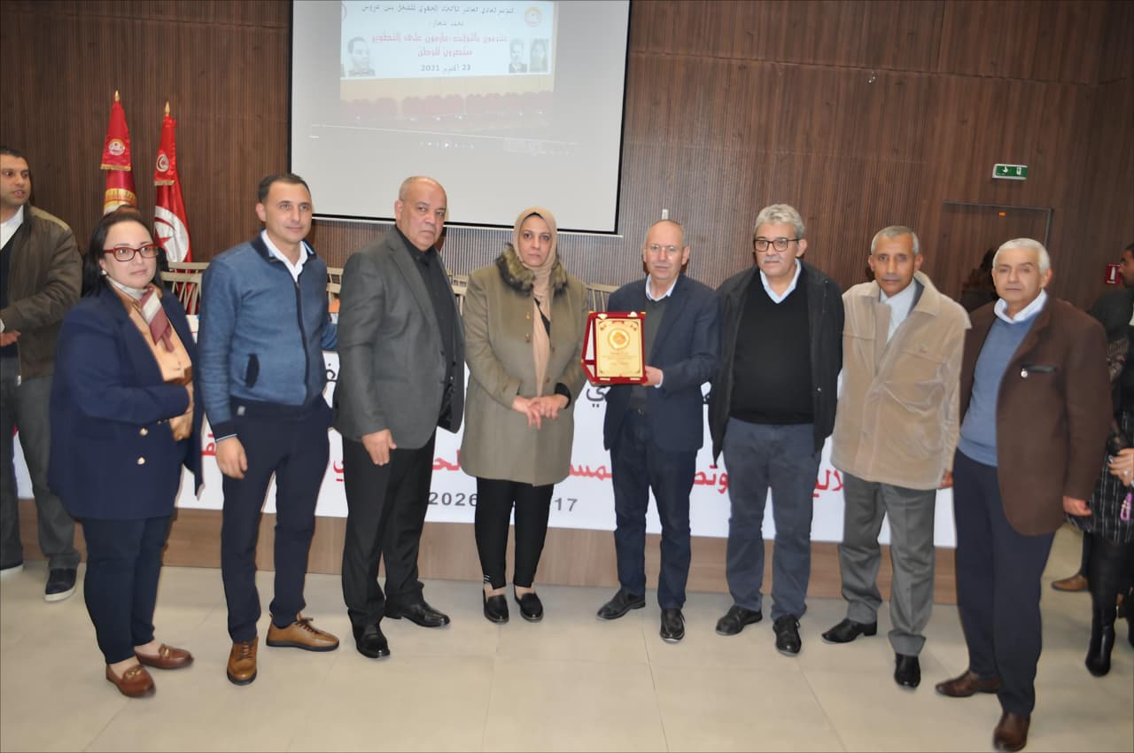 المؤتمر كان مناسبة لتكريم عدد من النقابيين وموظفي الاتحاد في لفتة اعتراف بما قدموه للمنظمة والحركة النقابية من جهود وتضحيات.