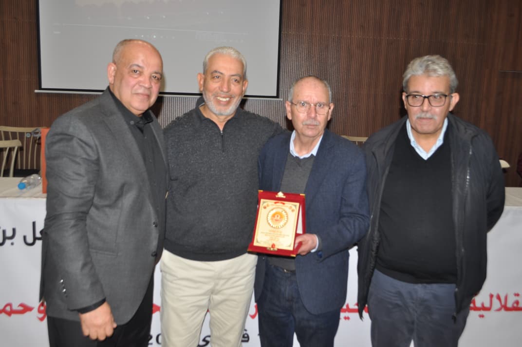 ودعا الأخ الامين العام إلى الاتعاظ بأخطاء الماضي والبناء على الإيجابي وترجمة شعار الوحدة الصماء والالتفاف حول المنظمة ورسم البرامج السليمة لاعادة الصورة الناصعة للمنظمة وترتيب البيت الداخلي من أجل توجه مناضل وديمقراطي ومستقل يكون في مستوى انتظارات الطبقة العاملة والحفاظ على مكتسباتها.