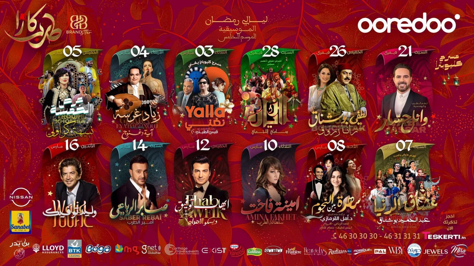 - عرض الخمسة بمشاركة الصوت الإستثنائي نبيهة كراولي، عشاق الدنيا