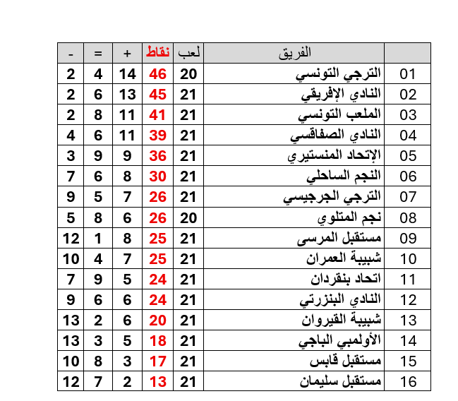 و على ضوء نتيجة مباراة اليوم ، يصبح ترتيب البطولة مؤقتا على النحو التالي :