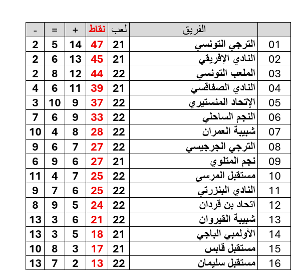 و على ضوء نتائج مباريات اليوم ، يصبح ترتيب البطولة مؤقتا على النحو التالي :