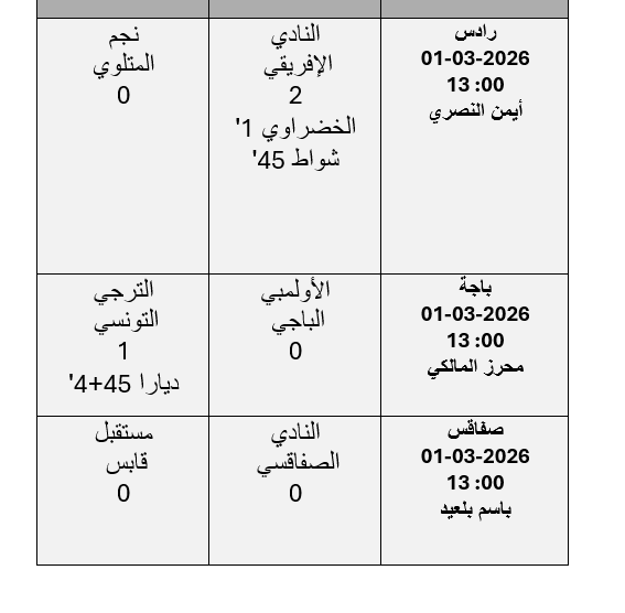 الرابطة 1 : نتائج الأشواط الأولى لمباريات الدفعة الثالثة من الجولة 22