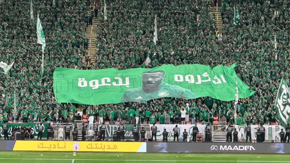* جماهير الأهلي السعودي تساند فهد المولد بلافتة مؤثرة في المدرجات