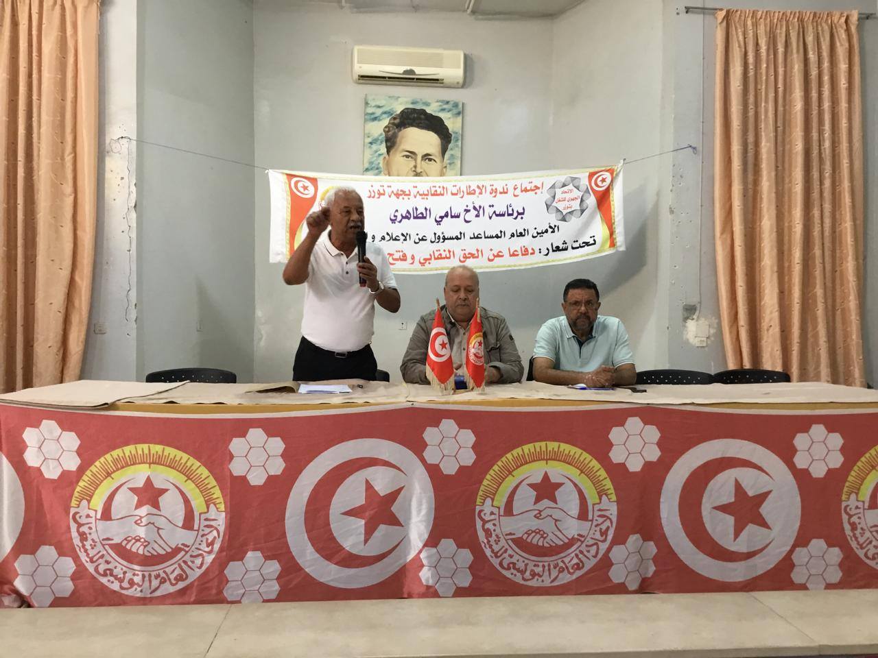 في ندوة إطارات توزر : تعزيز الجبهة النقابية ومواجهة حملات التشويه وضرب الحق النقابي