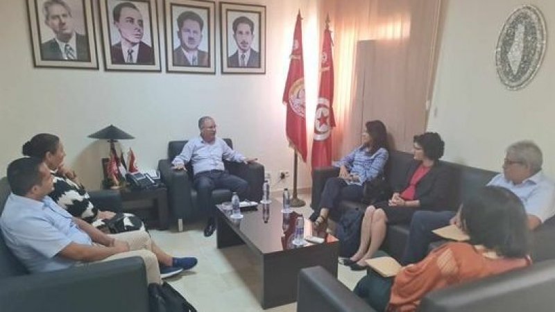 وقد حضر اللقاء الأخ أنور بن قدور الأمين العام المساعد المسؤول عن قسم الدراسات والتوثيق والأخت هادية العرفاوي الامينة العامة المساعدة المسؤولة عن قسم العلاقات الدولية.