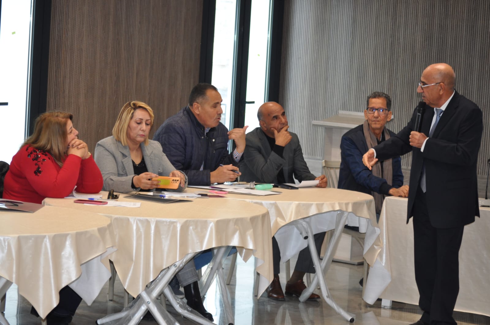 وافتتح الورشة الاخ عثمان الجلولي الأمين العام المساعد المسؤول عن قسم الحماية الاجتماعية الذي رحب بالحضور وبالرئيسة الجديدة للجمعية التونسية للنساء الديمقراطيات رجاء الدهماني والأستاذتين حفيظة شقير ونجوى مخلوف.