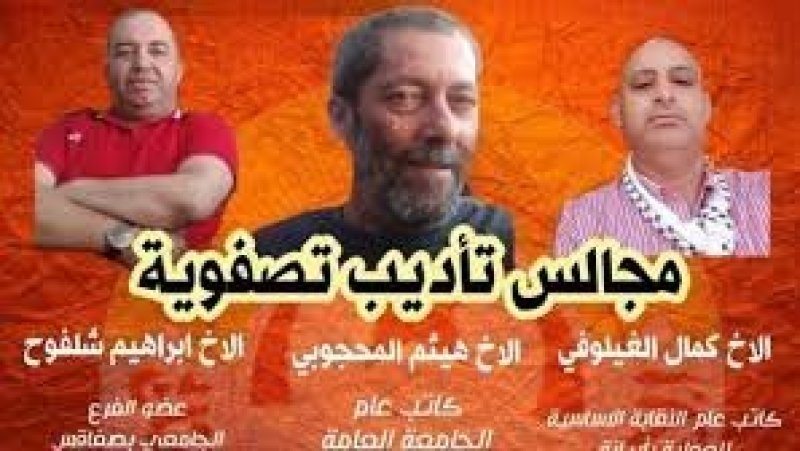 وأدانت الهيئة، المنعقدة تحت إشراف المكتب التنفيذي الجهوي للاتحاد الجهوي للشغل بصفاقس، "ما يتعرض إليه النقابيون والنقابيات من قطاع العدلية"، مستنكرةً بشكل خاص "ما صدر أخيرًا عن مجالس التأديب في حق كل من الإخوة هيثم المحجوبي، كاتب عام الجامعة العامة لأعوان العدلية وأملاك الدولة والملكية العقارية، والأخ إبراهيم شلفوح، عضو الفرع الجامعي لأعوان العدلية بصفاقس، والأخ كمال الغيلوفي، كاتب عام الفرع الجامعي لأعوان العدلية بأريانة".