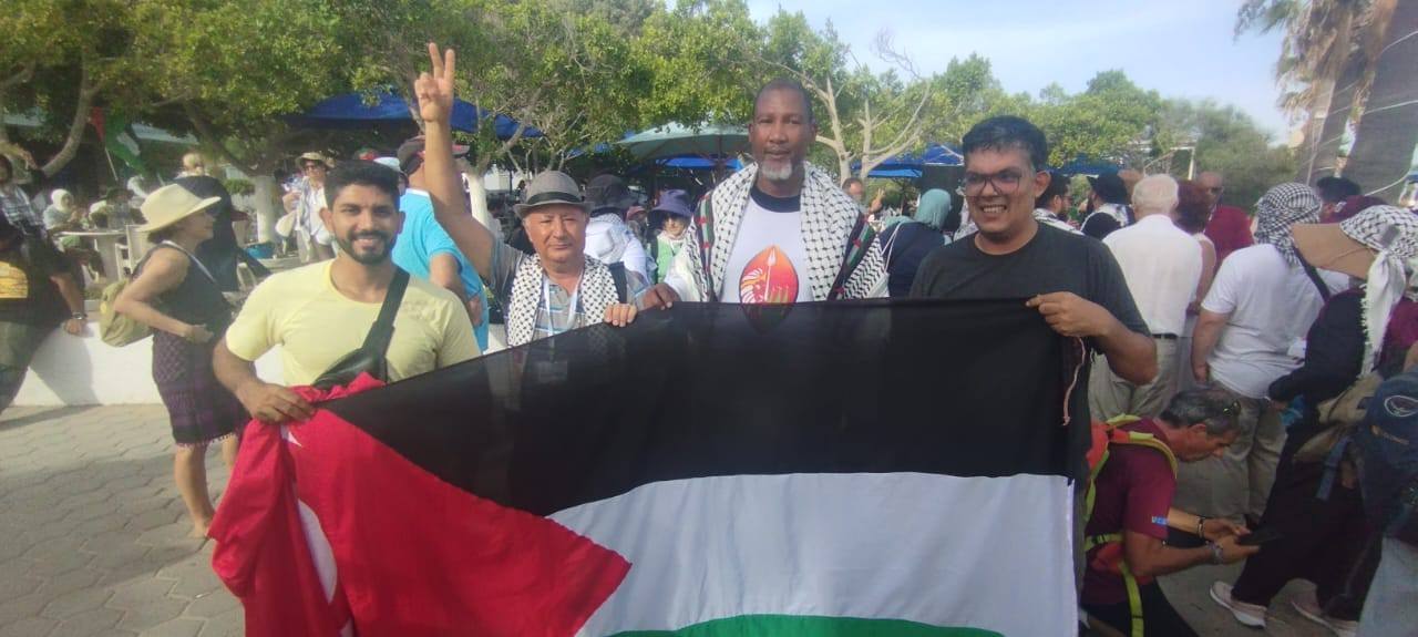 فمرحبا به وبكل من جاء للمشاركة في هذه المهمة النضالية الإنسانية النبيلة الهادفة إلى كسر الحصار الإرهابي على غزة وإيقاف جرائم الإبادة الجماعية وحملة التطهير العرقي فكونوا معنا في الموانئ والشوارع والساحات لتحقيق كل الاهداف التي ستصنع تاريخا جديدا للإنسانية بفضل صحوة الشعوب المناضلة .
