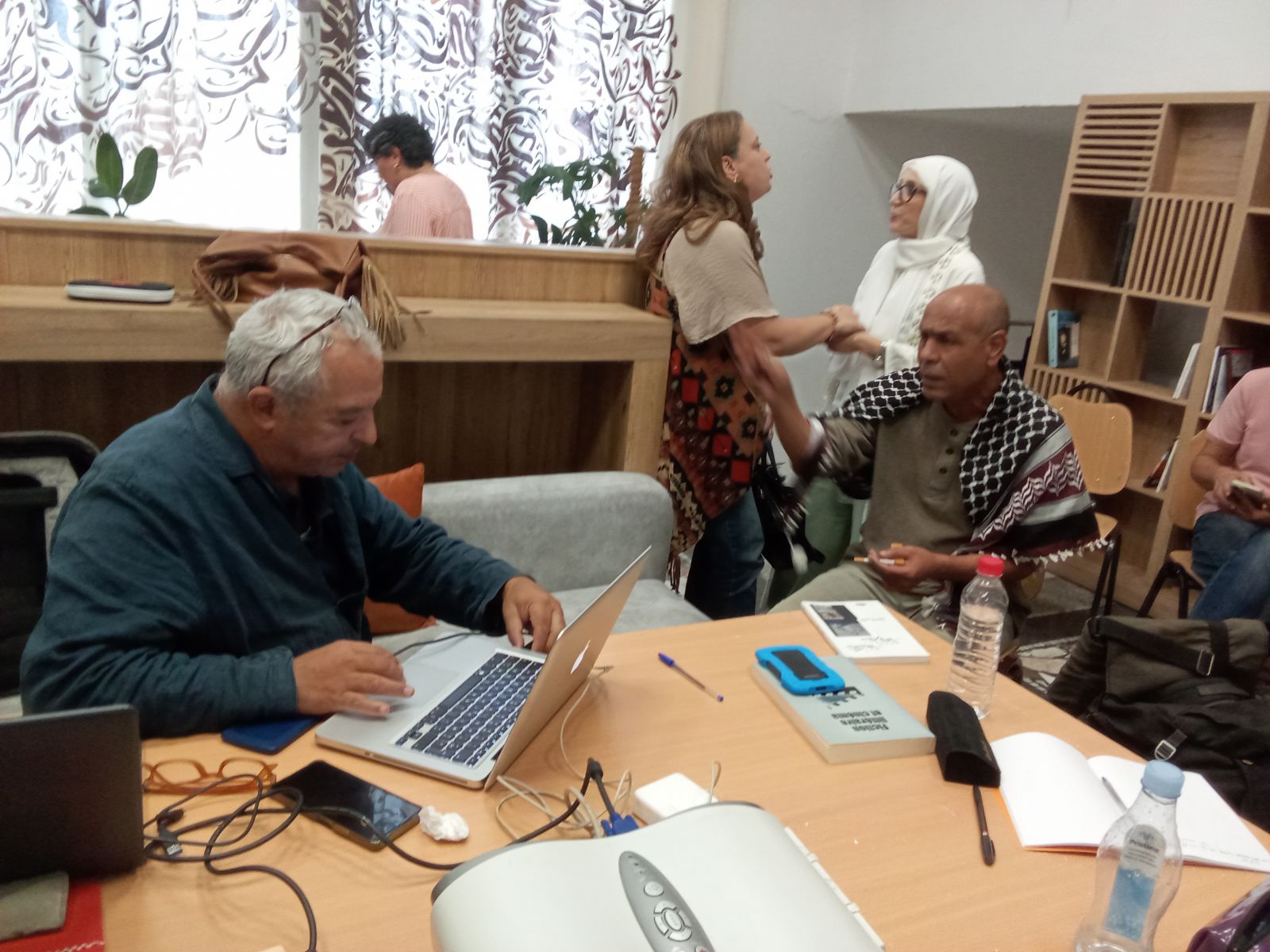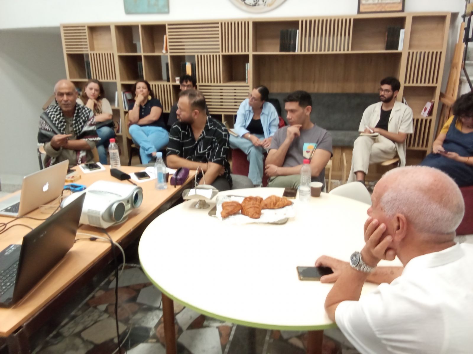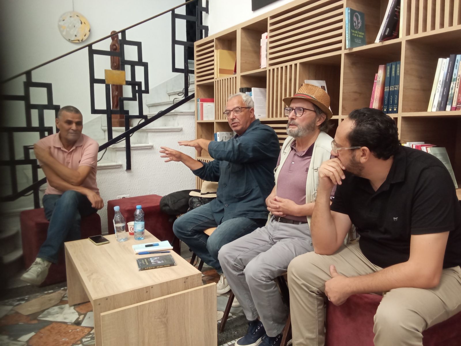 المخرجون السينمائيون محمد دمق وابراهيم لطيف وسمير الحرباوي وعدم من طلبة السينما والسمعي البصري ساهموا في النقاش ...