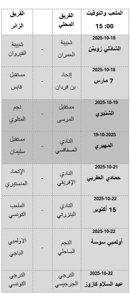 وفي ما يلي برنامج مباريات الجولة :