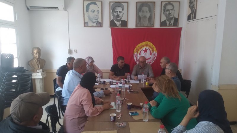 الشعب نيوز / نابل - عقد الفرع الجامعي للتكوين المهني بنابل صباح اليوم الإثنين 13 أكتوبر 2025 اجتماعًا بدار الاتحاد الجهوي للشغل، بحضور أعوان المركز القطاعي للتكوين في الآلية العامة بقرمبالية، وذلك على خلفية سلسلة من قرارات النقل التي وصفها بـ"التعسفية" والتي طالت عددًا من العاملين بالمركز.