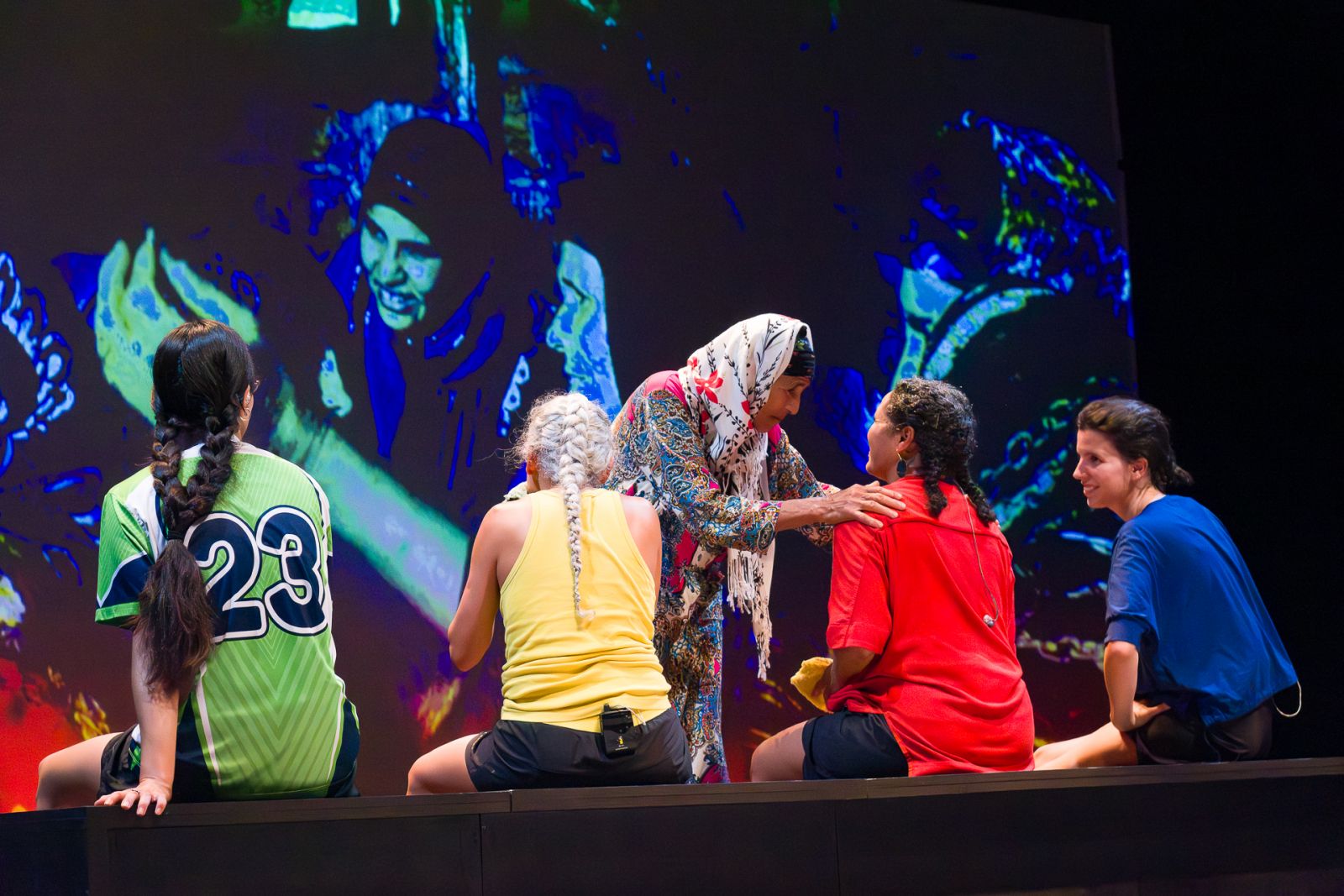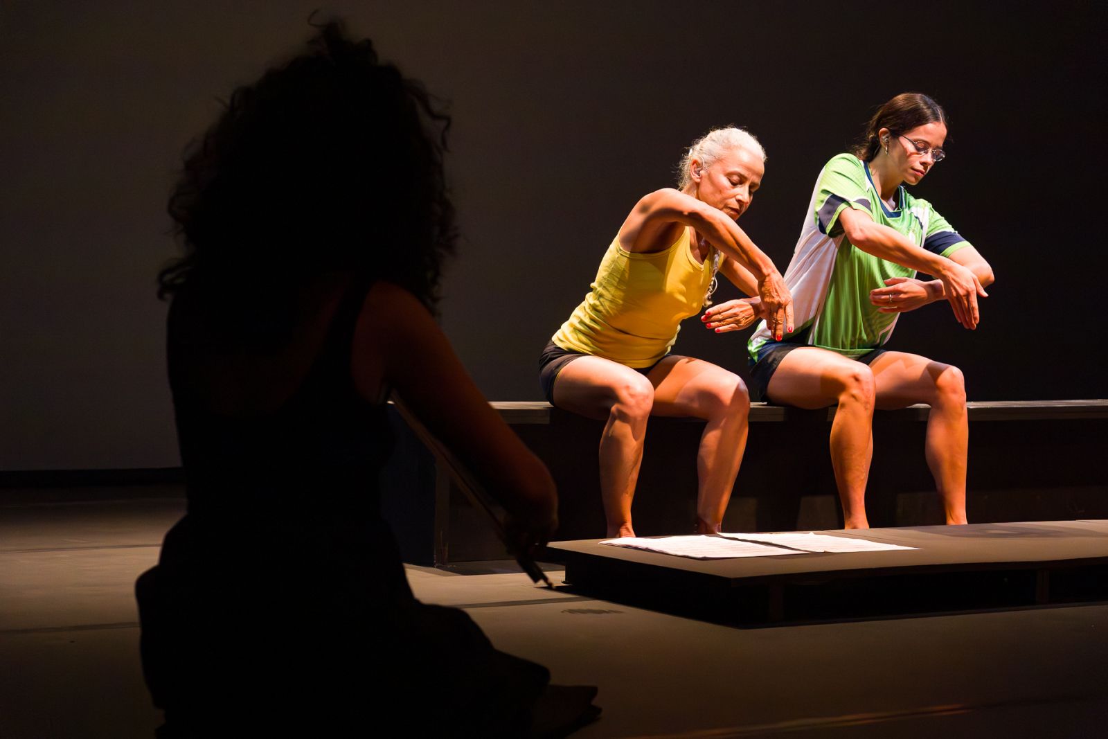 ويبدأ العرض من مشهد ثابت مقعد وآلة كمان موضوعان على الأرض، وأربع نساء يتحركن بخفة ويضعن أوراقا على الخشبة ويتبادلن نظرات وإيماءات صغيرة.