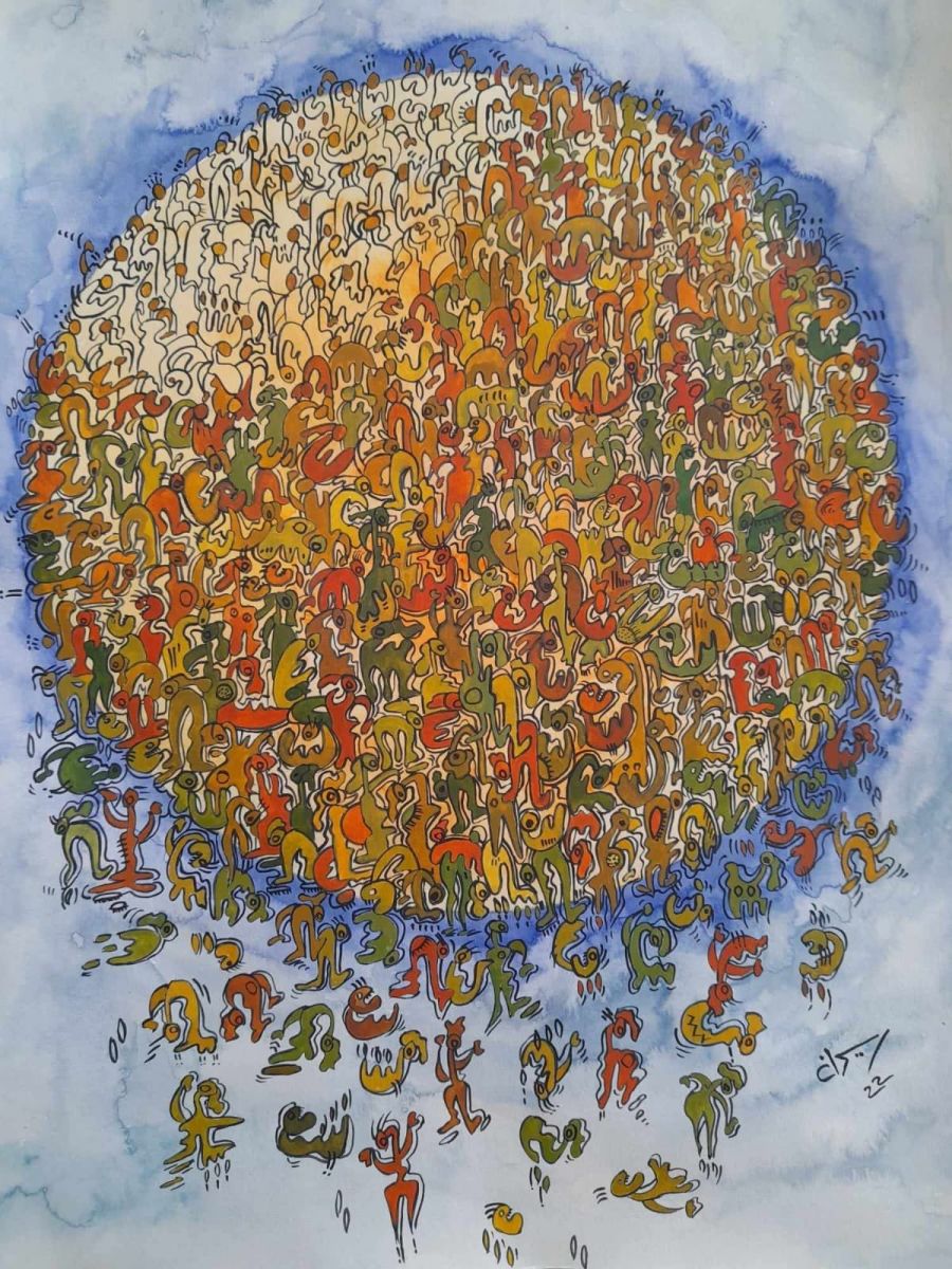 إمضاءات قد تترافق مع ما ينشئه التّشكيل المعاصر التّونسي حين نلقف تلك الزّواجات تغرق في تأثّرها بالبصريات بإمضاءات عدول الاشهاد أعمالا تفتح على علاقاتها بالموروث الخطّي لها ما لها من ضرورات القراءة والتّأويل، لكنّ هاجر لها نبضها التّشخيصي تؤالف بين العناصر والقلوب في صياغاتها الجمعيّة ضمن حدس خارق يذهب مذهبه في التّصّوف وقد يكتمل ذلك عند إمكان الحلقة، لها ملمحها البصري الخاص تعلق بنموذجها الفريد في جعل اللّوحة أشبه بزخرفة حيّة تنشأ من صخب لا يهفت تبدؤه برسومات مجرّدة غرائبيّة أصوتا وسيقانا وأفواها وأسمالا، يحدثُ ذلك، تنحدر تلك المشاهد والفصول من بعث مؤجّل،ما ترميه اليد يفضحه حجر النّرد، هكذا السّرعة أو التّسارع في تزاوج على العرف يقنع بالنّجوى بين ما يمكن وما لا يمكن، كشأن رقصات القبائل تتسلّق صراخاتها عند الولادة أو عند المآتم بينما المدينة القرية تحضر بعراقاتها تغرق تعرق من شدّة هذا الانتفاض، لعلّه فرحنا في تلك الأيّام من ممفتح يناير عند ذلك الهبوب.