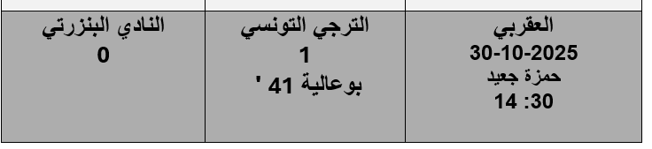 الشعب نيوز / كاظم بن عمار - إنتهى الشوط الأول لمباراة الترجي التونسي و النادي البنزرتي ضمن الدفعة الرابعة و الأخيرة من مباريات الجولة 11 لبطولة الرابطة المحترفة الأولى لكرة القدم موسم 2025-2026 على النتيجة التالية :