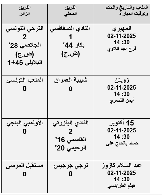 الشعب نيوز / كاظم بن عمار - إنتهت الأشواط الأولى من مباريات الدفعة الثانية من الجولة 12 لبطولة الرابطة المحترفة الأولى لكرة القدم موسم 2025-2026 و أسفرت عن النتائج التالية :